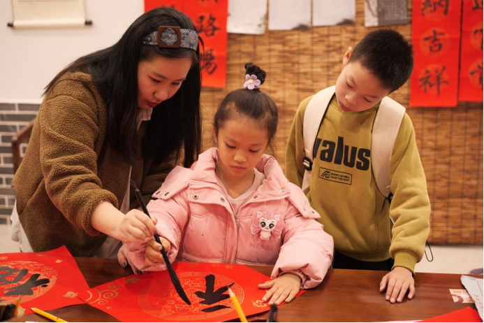 揭牌當日,中心精心策劃的開放日活動亮點紛呈。孩子們在“書春雅集”上提筆寫福,在“文脈游園”中闖關打卡,還可以觀看親子電影,更能在“圖書館探秘之旅”中暢游兒童書庫?;顒蝇F場,128張嶄新的“小讀者借書證”被免費發放到孩子們手中。一位剛拿到借書證的小朋友興奮地說:“這里的書好多呀,我每本都想借!以后周末我都要來!”