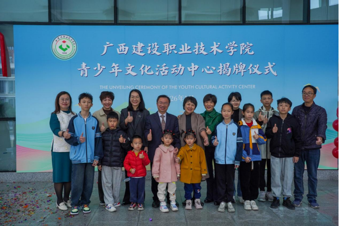 書香氤氳,童聲笑語。1月17日上午,廣西建設職業技術學院圖書館內,一個備受期待的的社區文化新地標,“青少年文化活動中心”正式揭牌啟用。學校副校長謝東,新華傳文大中專教材有限公司副總經理陸艷,相關職能部門負責人、合作企業代表,與來自周邊社區的眾多家庭、學校教職工及子女齊聚一堂,共同見證這一公益文化平臺投入服務。