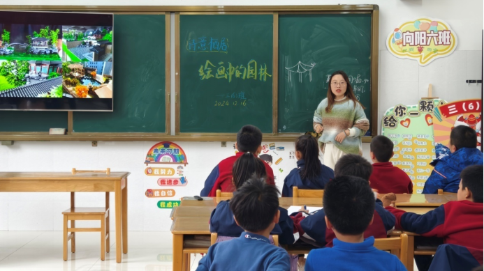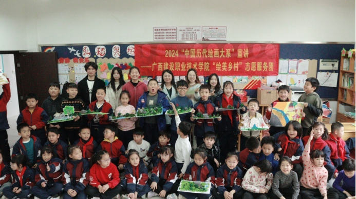 廣西建院12月18日訊(建筑與規劃學院 文/付喜亮 圖/宋霞 青昱希)12月16日,我校“繪美鄉村”志愿服務團在西大君武小學開展了一場主題為“詩意棲居之繪畫中的園林”宣講活動。此次宣講由“繪美鄉村”志愿服務團成員、規劃2401班付喜亮同學主講,云沐工作室教師團隊劉云、賈琪鈺、宋霞老師指導,西大君武小學43名師生參加。