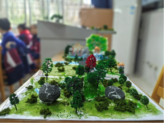 宣講結束后,同學們在“繪美鄉村”志愿服務團成員的熱情帶領下,開啟了園林微縮景觀營造活動。他們充分發揮自己的想象力與創造力,借助仿真樹、石頭、涼亭等材料,精雕細琢地打造出一個個獨具匠心的園林微縮景觀,仿佛將中式園林的魅力與情致都凝聚在這一方小小的天地之間。這項活動不僅提升了同學們的藝術素養與動手能力,還讓大家對中式園林文化有了更為深刻的感悟與認識。