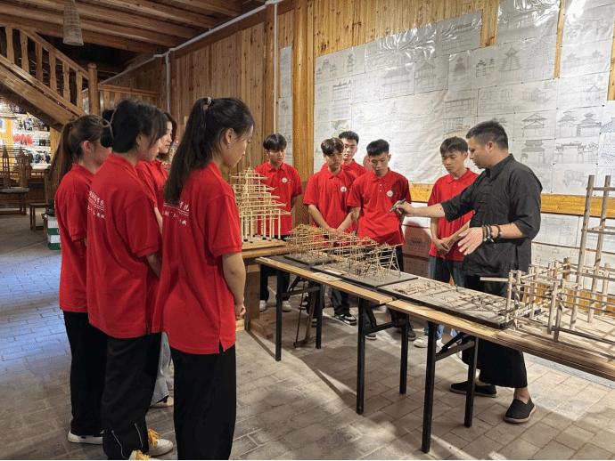 學生前往柳州三江侗族木構建筑博物館學習古建筑搭建技術