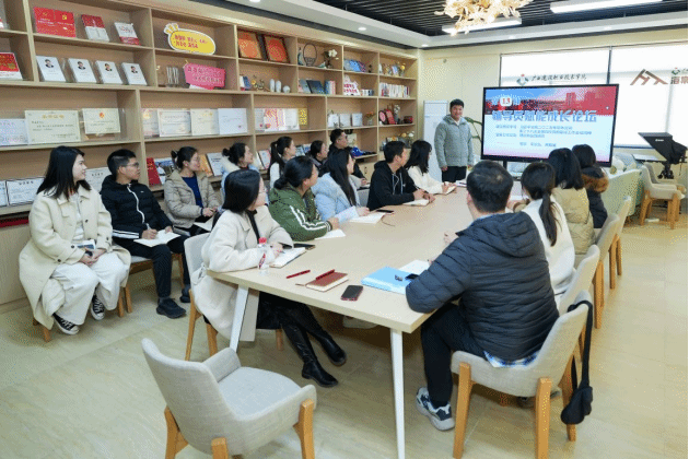 廣西建院1月11日訊(管理工程學院 文/黃欣欣 圖/宋景弘)1月10日下午,管理工程學院在海棠工作室舉辦第13期輔導員賦能成長論壇。論壇聚焦國家主席習近平二〇二五年新年賀詞、第二十八次全國高校黨的建設工作會議精神,圍繞輔導員理論和實踐研究,由輔導員宋景弘、黃振威領學并分享,學院全體學生工作人員參加,黨總支副書記郭海棠主持論壇。