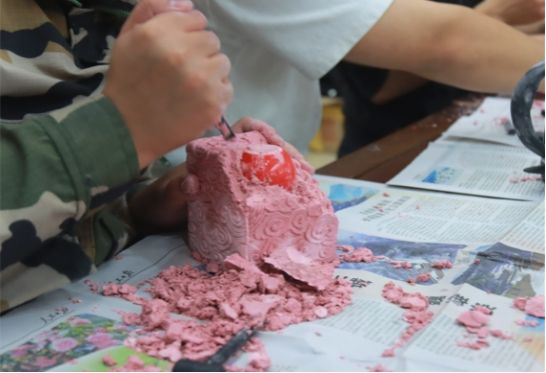 茶藝基地為同學(xué)們提供了創(chuàng)作非遺工藝品的基本配置,讓同學(xué)們在創(chuàng)作過程中感受匠人精神,把代代相傳的智慧與堅(jiān)持化為豐富的心理體驗(yàn)資源:剪紙以細(xì)膩的線條傳遞耐心,掐絲以繁復(fù)的手法展現(xiàn)細(xì)致,糖畫以甜蜜的創(chuàng)意激發(fā)想象力,泥塑以立體的形態(tài)塑造創(chuàng)造力,皮影戲以生動的表演凝聚專注力。在教師的帶領(lǐng)下,同學(xué)們從學(xué)習(xí)、欣賞再到創(chuàng)作,完成了一次獨(dú)特的心理療愈。