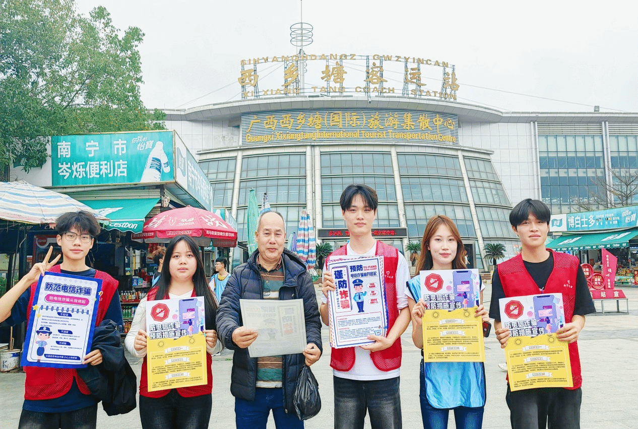 除了清潔工作,反詐宣傳也是此次活動的重要內(nèi)容。在客運站內(nèi),同學(xué)們通過發(fā)放宣傳資料、現(xiàn)場講解等方式,向旅客和周邊居民宣傳反詐知識。網(wǎng)絡(luò)2305班鄧會龍同學(xué)深有感觸地說:“在進行反詐宣傳時,我意識到很多人對詐騙手段缺乏足夠的了解,這讓我們更加堅定了宣傳反詐知識的決心。能夠幫助大家增強防范意識,我覺得這次活動非常有意義。”