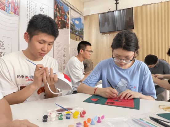 5月30日下午,工作室組織學生在二號公寓非遺展廳舉辦第26期“共話民傳”微課堂非遺文化體驗與展示活動,師生們齊聚一堂,共同開展竹編、香囊、侗族木構、糖畫、泥塑、臉譜、剪紙等非遺體驗活動,在手工制作中感受非遺文化并分享活動感悟。