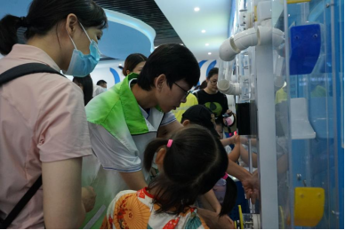 “創智聯”志愿者在科普廳為小朋友開展凈水小常識游戲