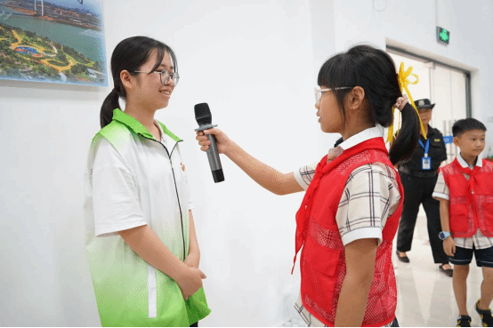 志愿者接受小記者對污水處理問題的采訪