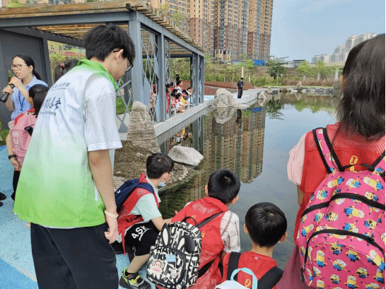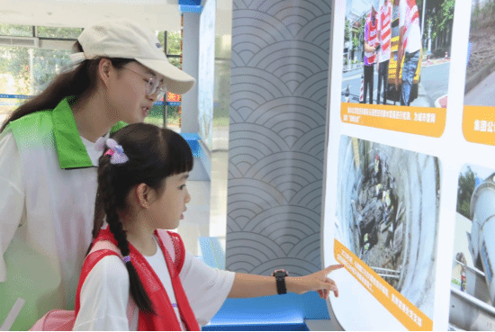志愿者向小朋友講解污水處理事例
