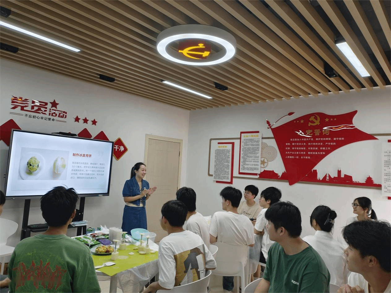 月圓手作,情滿中秋——冰皮月餅DIY。活動中,老師介紹了中秋節的由來和月餅的起源,展示了冰皮月餅所需材料與制作流程,讓同學們對月餅制作有了更深的了解。教學結束后,在老師的指導下,同學們邊學邊做:揉粉、包餡、刻模、包裝、成型,各式各樣的冰皮月餅相繼出爐,活動現場溫馨和美。