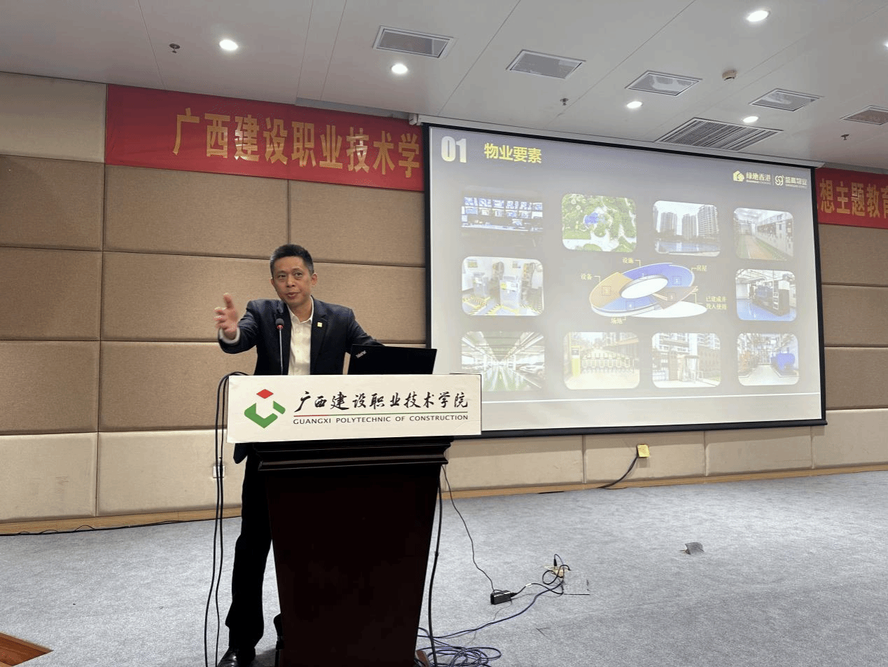 頒獎典禮后,盛高物業南寧中心城市徐敏智總經理以自己多年的物業管理從業經歷為所有物業班的同學做了一堂生動的專題講座。他提出了很多有建設性的從業建議,鼓勵同學們要努力學習理論知識,多學多看多練,培養獨立思考的能力,做到事無巨細、熱情飽滿,保持先進、厚積薄發,爭做新時代物業人。