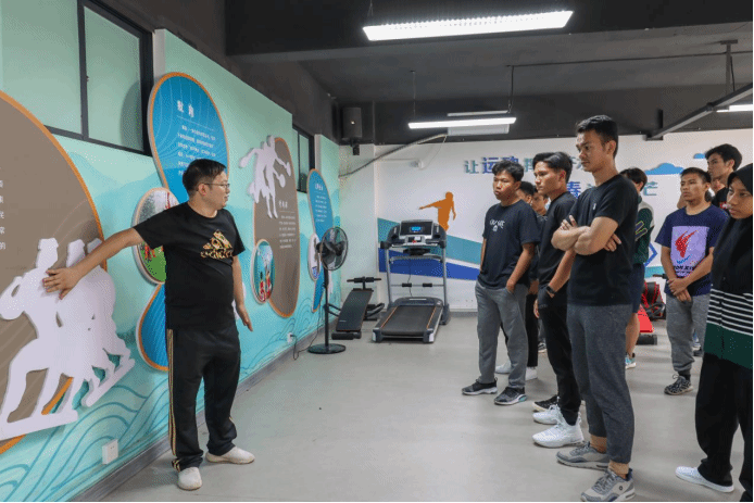 此外,知行工作室黃華老師結(jié)合健身吧文化墻向留學(xué)生們介紹了健身吧目前開展的相關(guān)活動(dòng),以及蘆笙舞、繡球、毽球、板鞋競速等傳統(tǒng)體育健身項(xiàng)目,表示歡迎大家利用課余時(shí)間到健身吧參加每日健身打卡、每周健身挑戰(zhàn)以及傳統(tǒng)民族體育活動(dòng),在充實(shí)校園生活的同時(shí)強(qiáng)身健體。