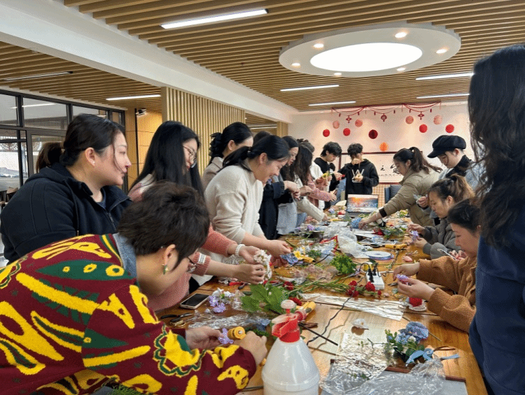 在建筑與規劃學院花藝專業志愿者的指導下,女職工們學習了花飾的制作技巧,包括花材的選擇、搭配、修剪和固定等。大家充分發揮自己的想象力和創造力,制作出一個個獨具特色的胸花、腕花和頭花。有的女職工選擇鮮艷的花朵,展現自己的活力和熱情;有的選擇清新的花朵,表達自己的溫柔和優雅。每一朵花飾都代表著女職工的個性和風采。