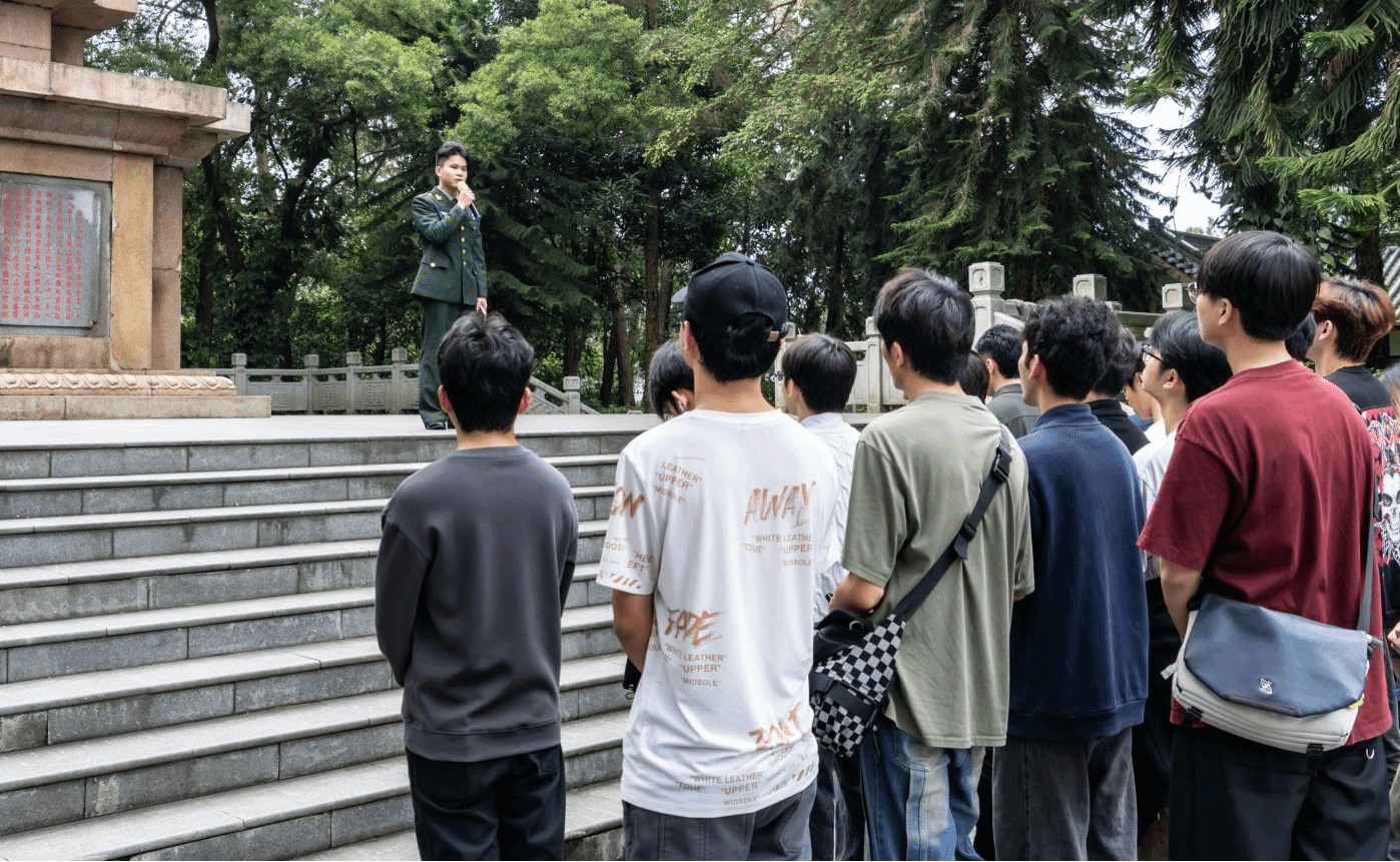 在烈士紀念碑下,程舒陽老師向同學們介紹了廣西學生軍抗日烈士紀念碑的歷史背景和意義,強調了學習雷鋒精神和紅色文化的重要性。隨后,師生們共同瞻仰了烈士紀念碑,向先烈們默哀致敬,表達了對他們英勇無畏、舍生忘死精神的崇高敬意。