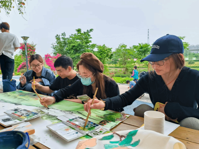 云沐工作室以“探尋那考河濕地公園 感受生態文明之美”為主題,帶領學生參觀那考河濕地公園,感受生態文明建設的重要意義。沿路參觀過程中,同學們積極參與到維護環境的行動中,自覺拾起路上的垃圾。參觀結束后,同學們發揮專業所學,選取一處風景,共同繪制了一幅1.5米長的水墨畫。