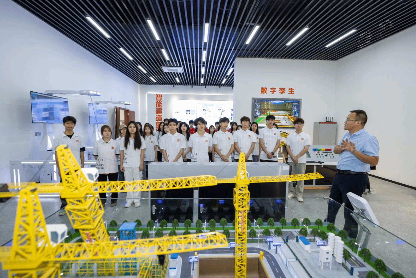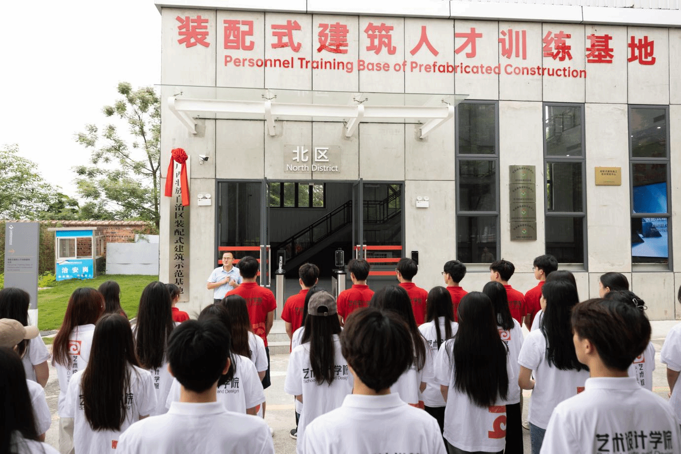 藝術設計學院青年團員認真傾聽裝配式人才訓練基地工作人員講解