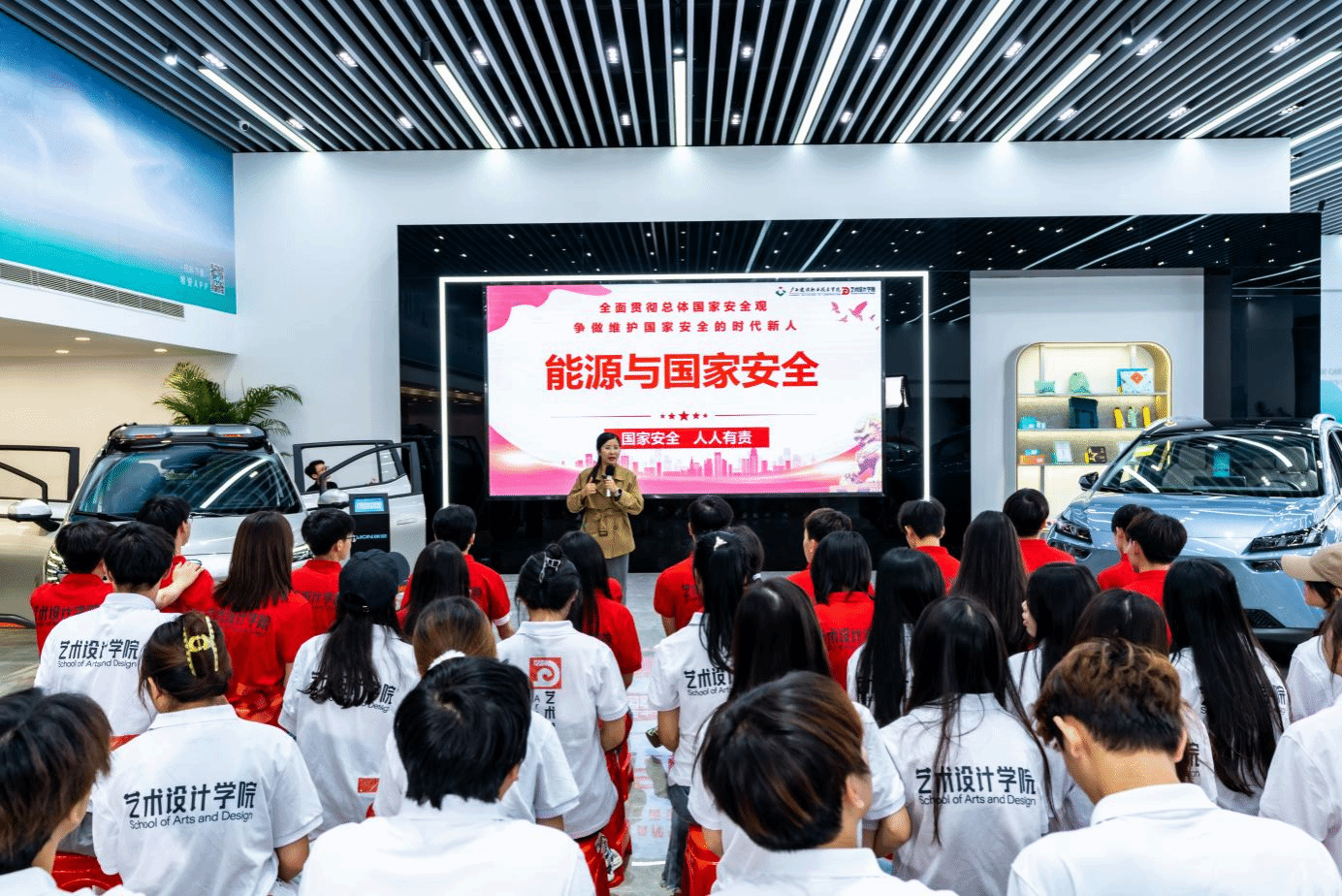 此次活動緊扣時代脈搏,以2024年政府工作報告中“新三樣”為切入點,組織學生深入新能源車企廣汽埃安五象體驗中心參觀學習,通過車企專家講解、觀看車輛組裝,感受鋰電池性能,了解我國新能源電動車行業的發展歷史以及未來趨勢;就地開展《能源與國家安全》教育團課,幫助學生厘清能源與國家安全之間的內在聯系,深入了解我國能源安全布局,增強總體國家安全觀意識;通過到自治區裝配式建筑人才訓練示范基地開展實訓研學,結合學生建筑專業學習,進一步加深學生對綠色建筑、BIM技術、裝配式施工、海綿城市等先進節能環保技術的認識,幫助他們在學好專業技術知識的同時增強國家安全意識,筑牢國家安全防線。