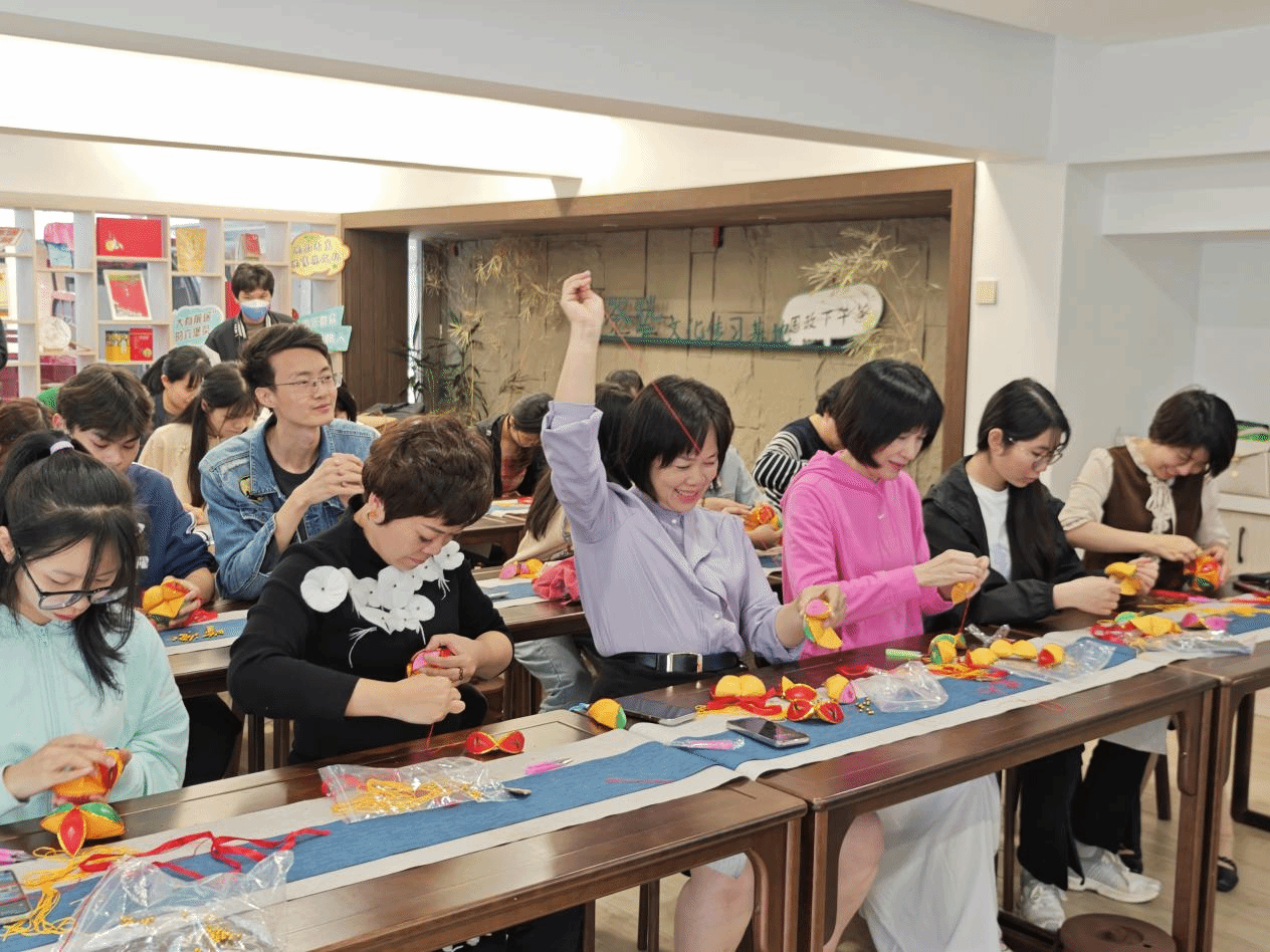 民族文化體驗活動在跳竹竿舞中拉開了帷幕。隨后,馬院教工第二黨支部副書記莫玉嬋向師生們詳細介紹了“廣西三月三”的文化內(nèi)涵,以及繡球的歷史淵源與制作工藝,讓師生們了解到繡球有團結(jié)、美滿、希望、健康等美好的寓意。師生們通過親手制作手工繡球,感受壯族人民獨特的民族文化和手工藝魅力。在制作繡球的過程中,現(xiàn)場氣氛熱烈而溫馨,師生們互相交流制作心得,在一針一線中感悟“非遺文化”的內(nèi)涵和魅力,提升民族自豪感。