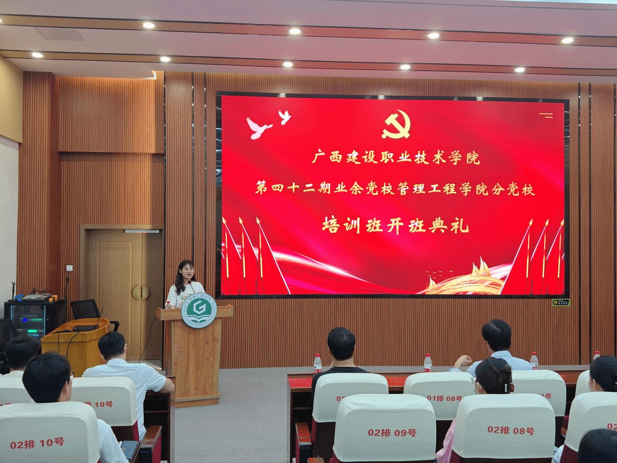 廣西建院5月9日訊(管理工程學院 文/孫文 圖/陳振彪 陳昭鑫)5月8日,管理工程學院在二號教學樓701報告廳舉行第四十二期分黨校培訓班開班典禮。管理工程學院黨總支書記代端明,學生支部支委以及培訓班全體學員參加會議。會議由學院黨總支專職組織員賴小華老師主持。