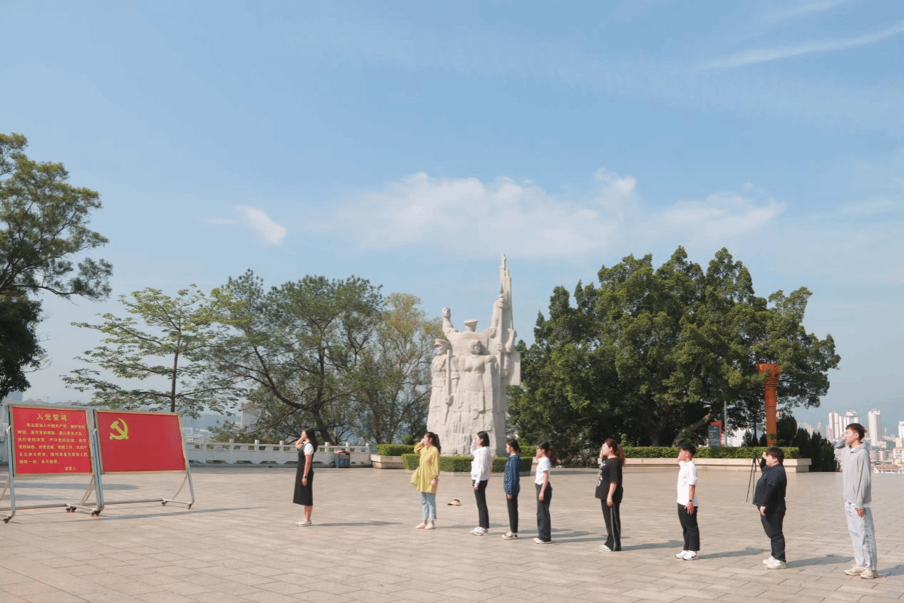 師生們在百色起義烈士紀念碑前重溫入黨誓詞