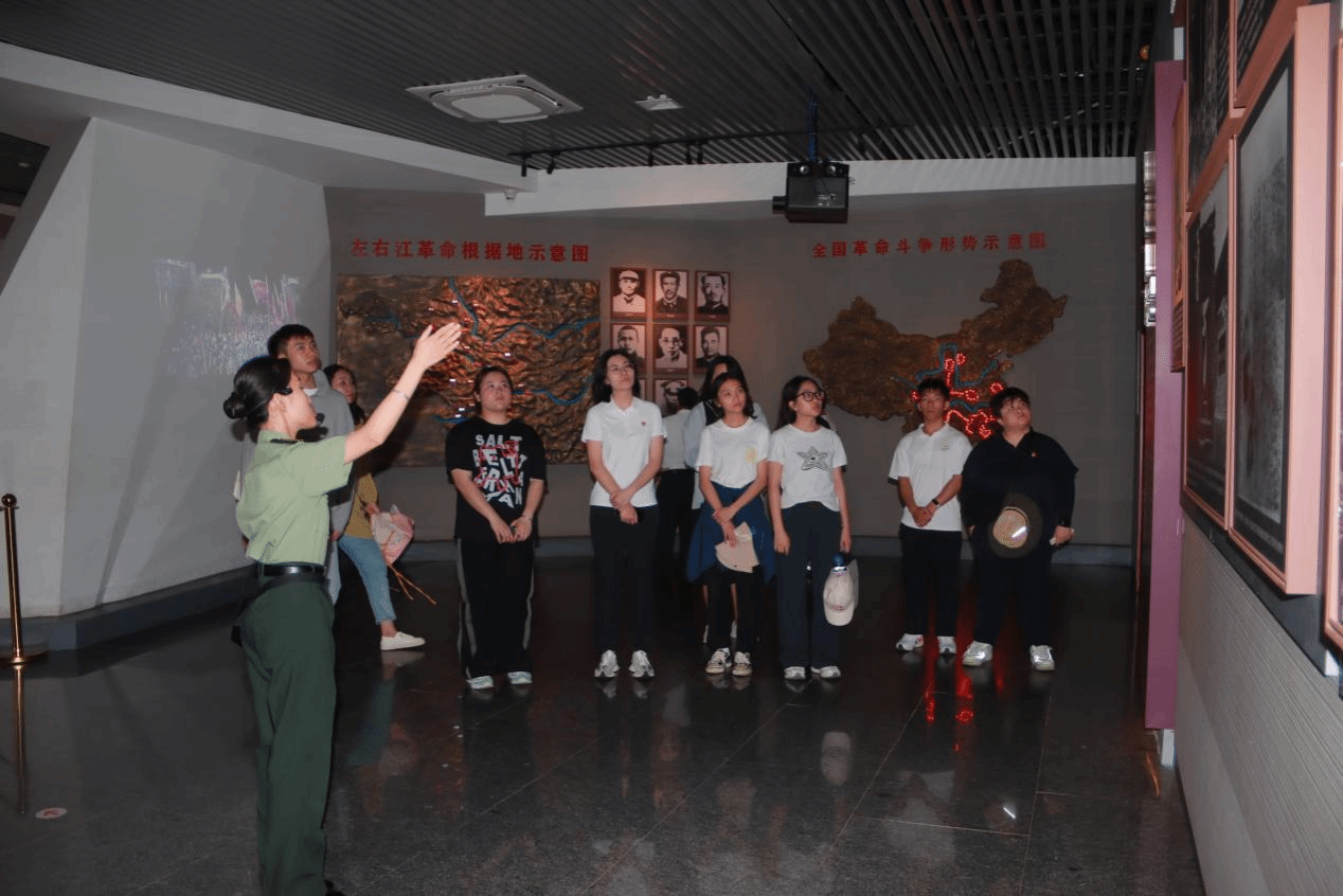 在百色起義紀念館,通過聆聽現場講解,觀看實物、照片和視頻等珍貴的歷史資料,師生們對百色起義的歷史背景、主要事跡以及紅七軍的戰斗歷程有了更深一步的了解,一幅幅老照片、一件件老事物都記錄著當年百色起義革命先輩們不畏艱險,敢于犧牲,英勇奮斗、艱苦卓絕的奮斗歷程。師生們仔細閱讀墻上文字圖片介紹,瞻仰柜中先烈遺物的時候,深深表達出了對革命先烈崇高的敬仰之情。