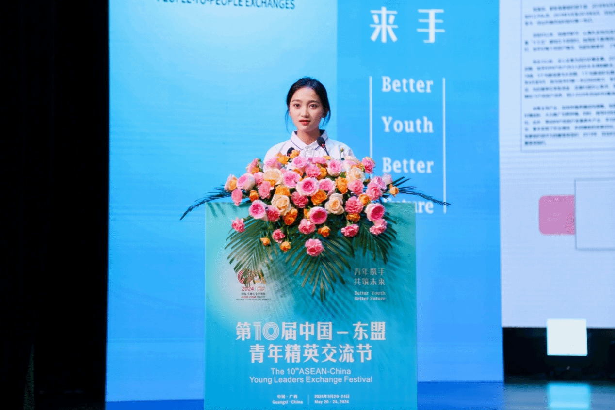 我校學(xué)生韋思鈺作為廣西青年代表上臺(tái)發(fā)言