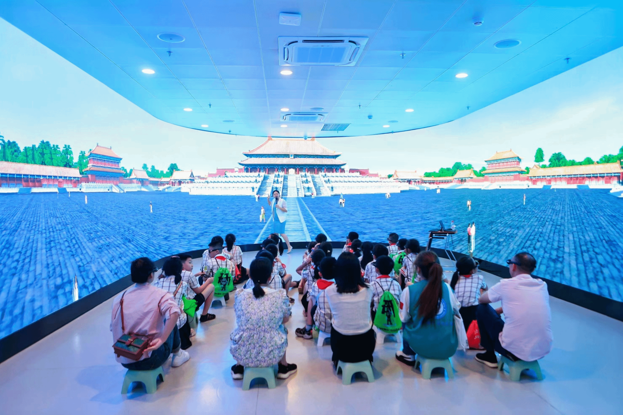 小朋友們在360度沉浸式教育基地領略古建筑之美