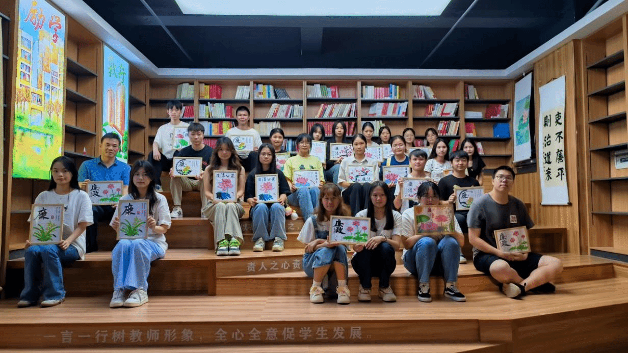 為增強對廉潔文化的認知和理解,學院團總支組織新發展團員代表進行廉潔詩詞與廉潔故事分享。與會團員進行了廉潔主題紐扣貼畫手工活動。同學們用心用情,互幫互助,一幅幅以“蓮”為主題的貼畫生動又形象地展現在大家面前。