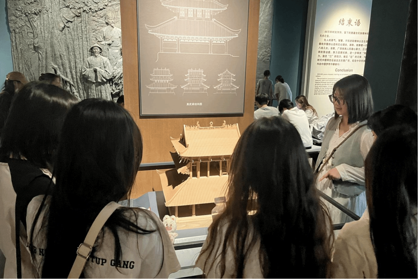 藝術(shù)設(shè)計(jì)學(xué)院學(xué)生認(rèn)真聽(tīng)廣西博物館講解員講解