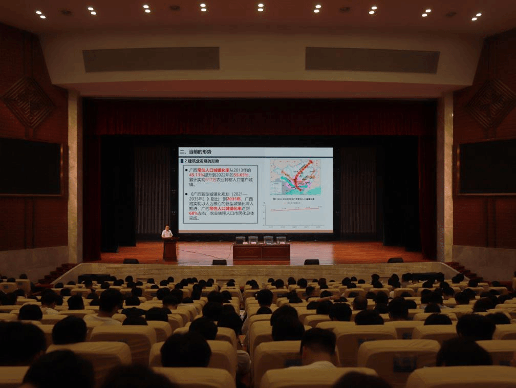 李朝陽院長做2025屆畢業(yè)生崗位實習(xí)總動員。他分析了當(dāng)前的就業(yè)形勢以及建筑業(yè)發(fā)展形勢的嚴(yán)峻性,告誡同學(xué)們要積極轉(zhuǎn)變就業(yè)觀念,合理定位自己,確保先就業(yè)后擇業(yè)。同時,他結(jié)合壯美廣西發(fā)展大勢,鼓勵同學(xué)們提升對建筑行業(yè)發(fā)展信心,端正就業(yè)態(tài)度,明確就業(yè)目標(biāo),努力增強(qiáng)自身實力。