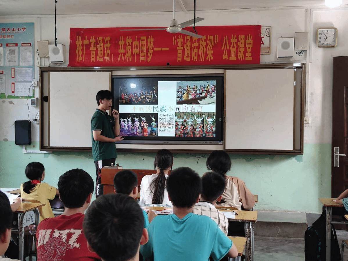 廣西建院7月14日訊(人文教育學(xué)院 盛麗梅)“少年智則國(guó)智,少年富則國(guó)富;少年強(qiáng)則國(guó)強(qiáng),少年獨(dú)立則國(guó)獨(dú)立……”7月11日,在河池市都安瑤族自治縣自成村古山小學(xué)的教室里,志愿者正在教小學(xué)生們用普通話朗誦《少年中國(guó)說(shuō)》。這是我校“同心同語(yǔ)”推普實(shí)踐團(tuán)開展“推普助力鄉(xiāng)村振興”大學(xué)生暑期社會(huì)實(shí)踐活動(dòng)的一個(gè)場(chǎng)景。