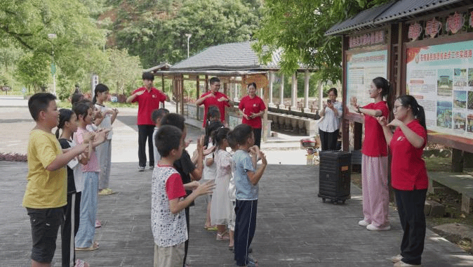 活動期間,實踐團以“傳統文化潤童心,中華經典共傳承”為主題,面向塘平村少年兒童群體開展了茶禮儀、茶詩文誦讀、二十四節氣手勢舞、二十四節氣非遺手工竹編畫、手工茶杯墊等系列特色課堂活動。通過寓教于樂的方式,讓中華優秀傳統文化浸潤童心,滋養少年兒童成長,堅定文化自信,助推青少年賡續傳統文化。