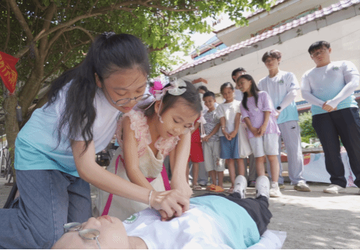 實(shí)踐團(tuán)成員現(xiàn)場教授急救知識(shí)