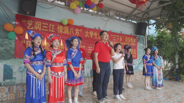 為提升三江坡青少年生態(tài)環(huán)境保護(hù)意識(shí)和安全防范意識(shí),實(shí)踐團(tuán)開展了“以愛之名,護(hù)母親河之清”河道清理活動(dòng)和防溺水安全教育,活動(dòng)以互動(dòng)游戲、知識(shí)競賽和情景模擬的形式開展,群眾互動(dòng)性強(qiáng)、參與感高;實(shí)踐團(tuán)組織開展了“藝潤三江,情滿八方”文藝晚會(huì),節(jié)目內(nèi)容從歌頌祖國、民族團(tuán)結(jié)到鄉(xiāng)村振興,三江坡“小舞臺(tái)”展現(xiàn)出了鄉(xiāng)村發(fā)展的“大風(fēng)貌”,進(jìn)一步鑄牢中華民族共同體意識(shí);實(shí)踐團(tuán)還開展“童心向黨·彩繪時(shí)光”美育實(shí)踐活動(dòng),運(yùn)用兒童畫形式展示新時(shí)代祖國發(fā)展成就、家鄉(xiāng)的發(fā)展變化和個(gè)人的幸福生活,爭做德智體美勞全面發(fā)展的社會(huì)主義接班人。