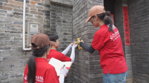 實(shí)踐團(tuán)在測(cè)量古建筑
