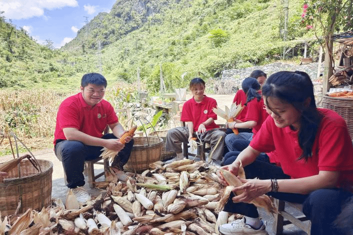 實踐團幫助自成村藍炳力書記收玉米