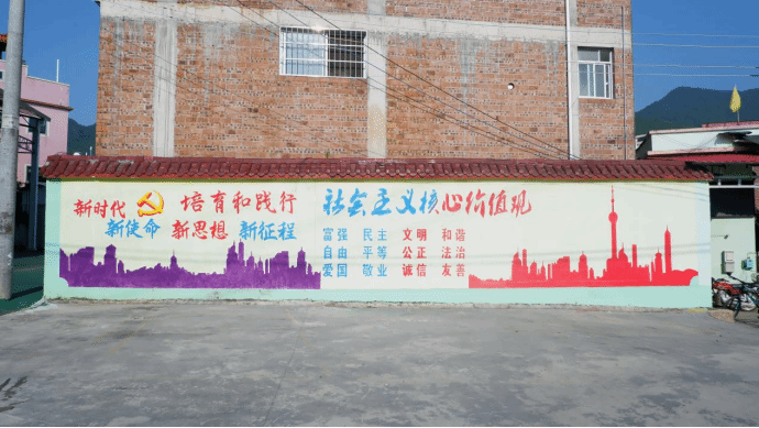 為了讓移風易俗理念深入人心,營造積極向上的鄉村氛圍,實踐團來到西江村開展“移風易俗”主題實踐活動,一是繪制移風易俗主題墻,搭建宣傳教育新陣地,利用圖文形式展現移風易俗內容,實現鄉村風貌和鄉村文明“雙提升”;二是入戶宣講鄉村振興和移風易俗政策內容,引導村民主動做傳播文明新風的有力踐行者。