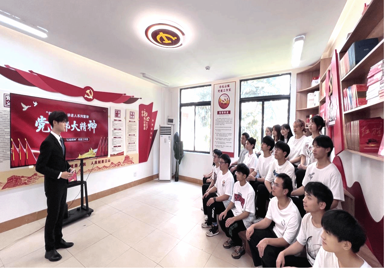 以“開天辟地、敢為人先的首創精神,堅定理想、百折不撓的奮斗精神,立黨為公、忠誠為民的奉獻精神”的紅船精神內涵為指導,培育了一支“紅船精神”講述人師生隊伍,以革命文化、社會主義先進文化、中華民族優秀傳統文化、社會主義核心價值觀作為核心,在“紅船精神”教育實踐基地定期開展理想信念主題宣講,結合易班等新媒體平臺進行線上展播,推進紅色教育進宿舍,引導廣大師生繼承革命傳統、傳承紅色基因,增強文化自信和理論自信。