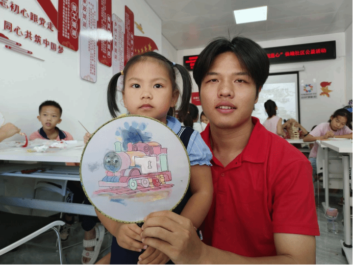 在炎炎夏日,一把精美的團(tuán)扇,不僅能為人們帶來(lái)清涼,更是傳遞情感、展現(xiàn)個(gè)性的藝術(shù)載體。在團(tuán)扇制作和醒獅簡(jiǎn)筆畫繪畫課上,成員們引導(dǎo)社區(qū)青少年自由發(fā)揮創(chuàng)意。無(wú)論是山水田園的寧?kù)o致遠(yuǎn),還是花鳥蟲魚的生機(jī)勃勃,抑或自己喜愛(ài)的卡通人物,都能通過(guò)手中的畫筆,一一呈現(xiàn)于扇面之上。