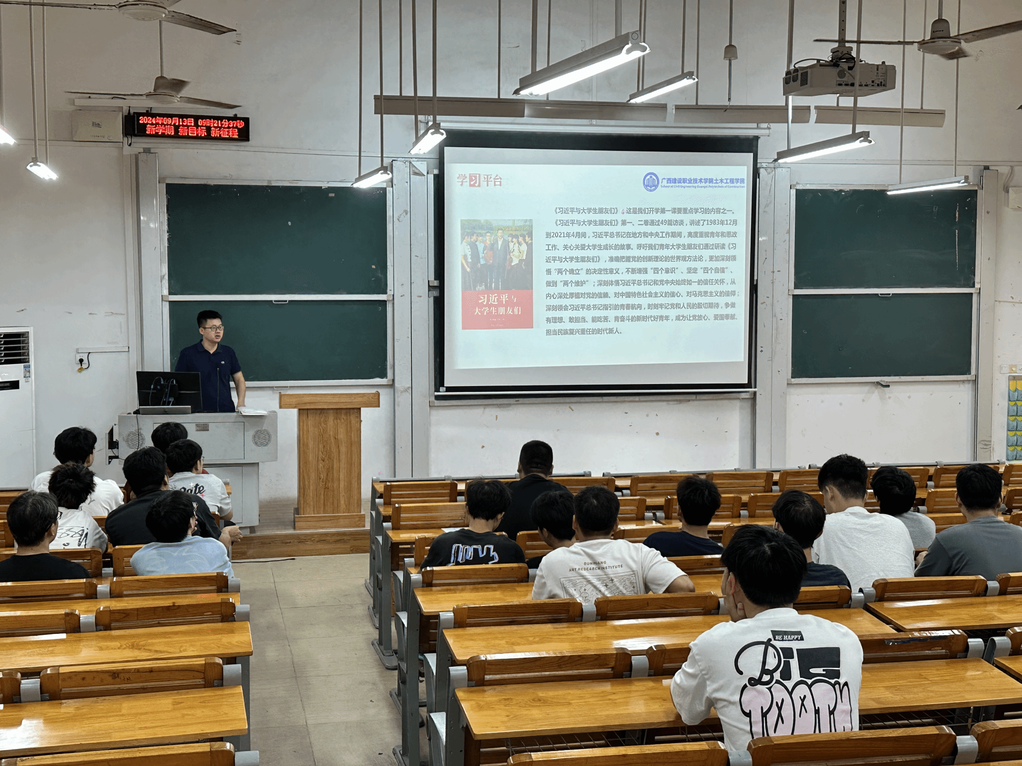 廣西建院9月30日訊(土木工程學院 文/石明成 潘秀鎮 圖/賴業梅)為引導廣大青年堅定理想信念,土木工程學院團總支于9月組織開展了《習近平與大學生朋友們》(第一,第二卷)讀書分享系列活動。學院全體輔導員、全體團員青年參加活動。