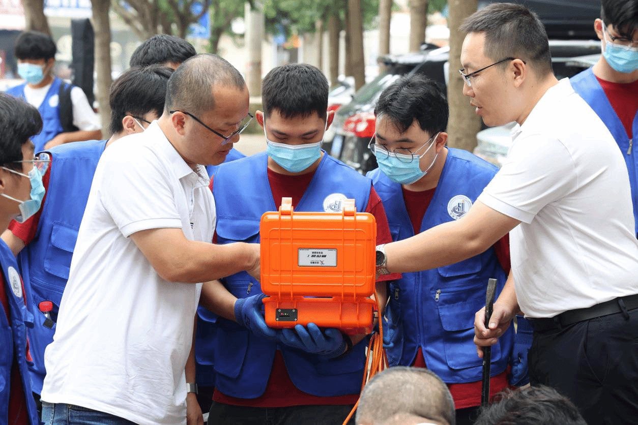 專業(yè)教師指導(dǎo)志愿者使用管道內(nèi)窺鏡儀器探測