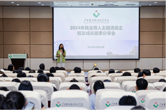 廣西建院10月23日訊(招生就業(yè)處 練翠瀅)10月19日,我校順利舉辦了一場以“校友成長故事分享”為主題的就業(yè)育人活動。本次活動特邀我校2018級室內(nèi)設計專業(yè)優(yōu)秀校友陳燕鑫與2019級市政工程技術專業(yè)優(yōu)秀校友蔣林捷重返校園,與第四期“宏志助航計劃”培訓班學員及學生代表共300余人共聚一堂,共話成長。