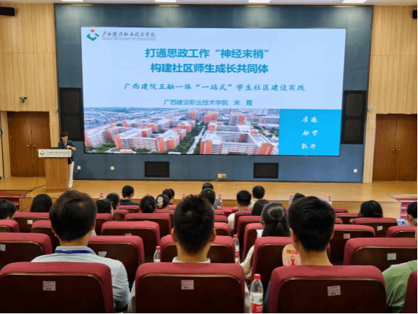 參觀結束后,宋霞老師以《打通思政工作“精神末梢” 構建社區師生成長共同體》為題,從建設背景、思路與實踐三個層面,系統闡述了我校“一站式”學生社區的建設理念與具體要求,并分享了我校融思想、融文化、融專業、融技能、融生活五融一體特色建設經驗。