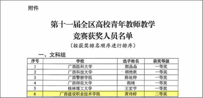 近日,由自治區(qū)教育廳、自治區(qū)總工會(huì)聯(lián)合舉辦的第十一屆全區(qū)高校青年教師教學(xué)競賽圓滿落幕。我校參賽教師憑借扎實(shí)的教學(xué)基本功、創(chuàng)新的教學(xué)設(shè)計(jì)和精湛的課堂呈現(xiàn),在全區(qū)眾多參賽選手中脫穎而出,斬獲一等獎(jiǎng)1項(xiàng)、二等獎(jiǎng)2項(xiàng)、三等獎(jiǎng)1項(xiàng),參賽教師全員獲獎(jiǎng)。其中,工科組詹雷穎老師成為本屆所有一等獎(jiǎng)獲獎(jiǎng)教師中唯一一位來自高職院校的教師。