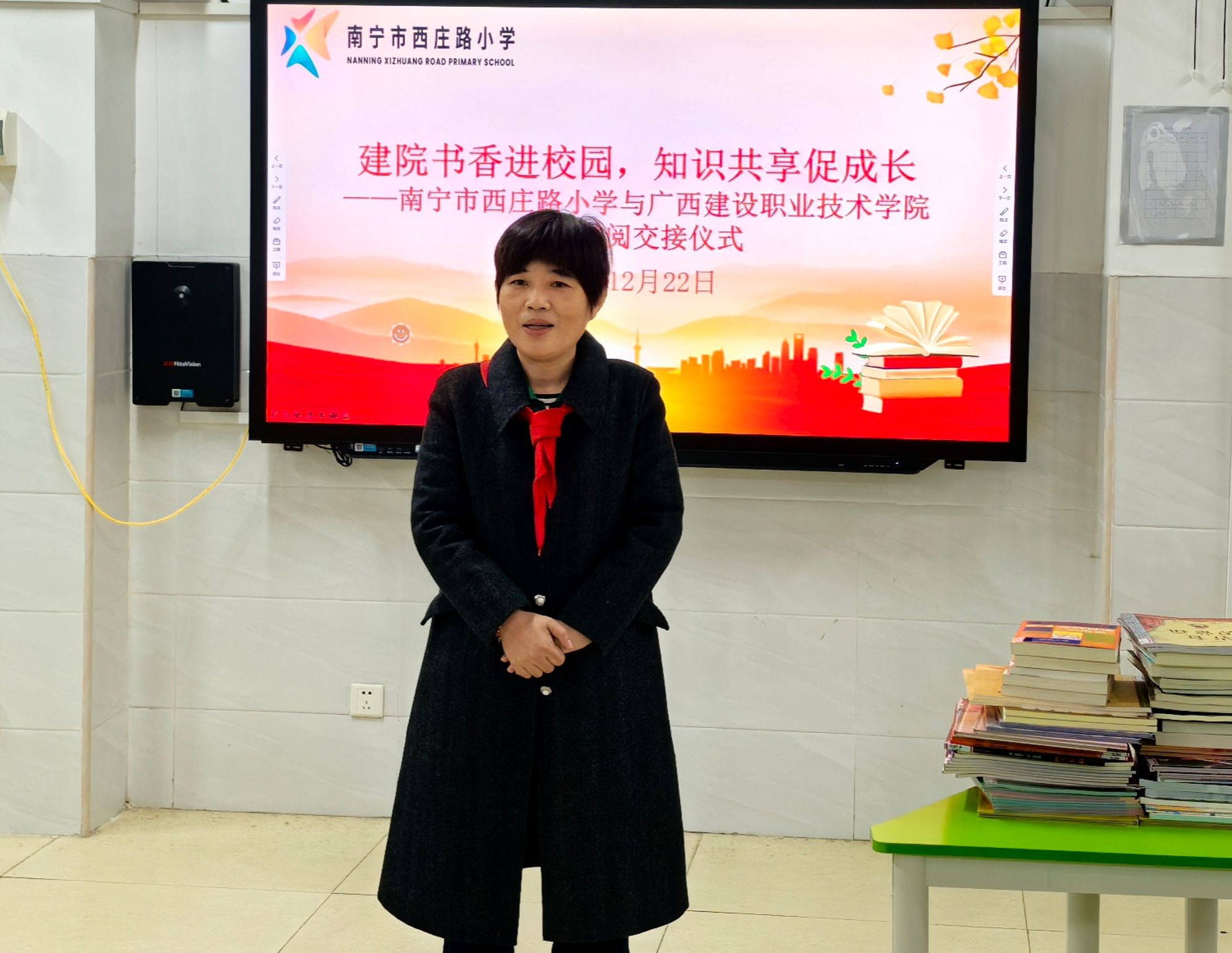 12月22日上午,我校圖書館踐行閱讀推廣的社會責任,將2479冊精心挑選的少兒圖書和110張讀者借書證送往南寧市西莊路小學,以實際行動推動全民閱讀從校園萌芽。兩校師生代表齊聚西莊路小學二樓多媒體教室,共同見證這場意義深遠的圖書交接儀式。