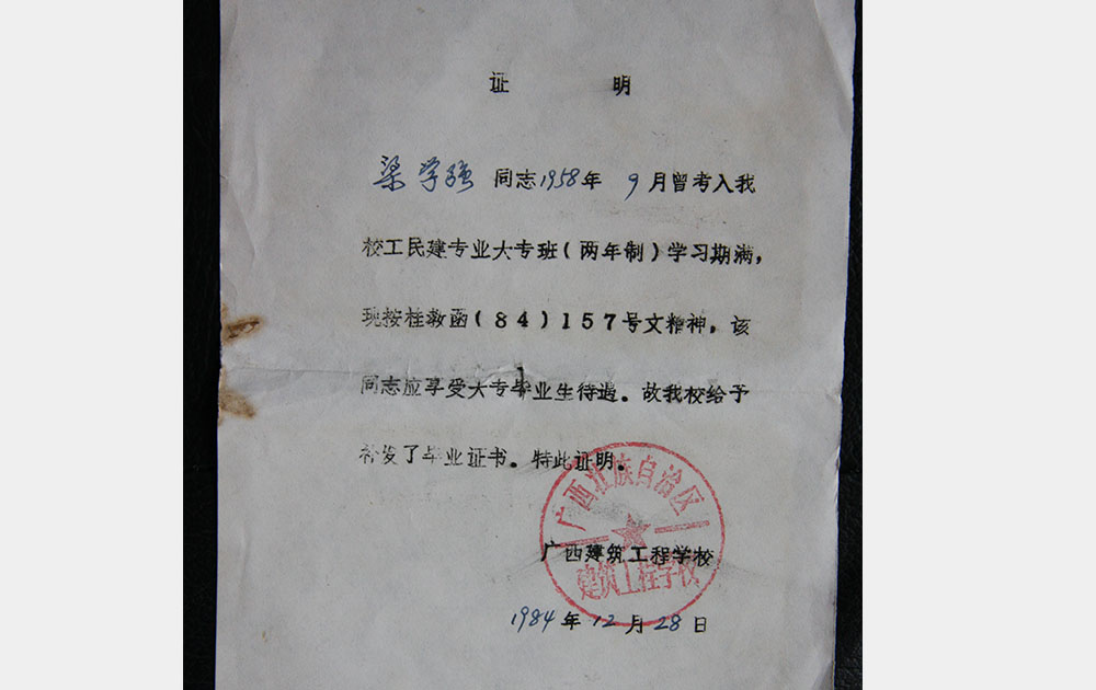 1984年學校對1958級高級班(兩年制)補發大專畢業證書