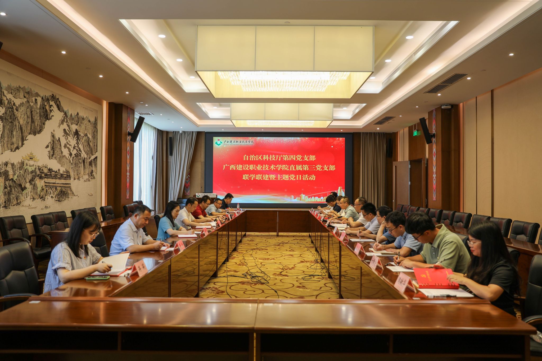 廣西建院5月16日訊(文/教務(wù)處 范立添 圖/黨委宣傳部 韋植?。榧訌?qiáng)黨建引領(lǐng)作用,深入推進(jìn)科教融匯,5月15日下午,自治區(qū)科技廳科技資源統(tǒng)籌處處長、第四黨支部書記湛永松,前沿技術(shù)與產(chǎn)業(yè)科技處處長潘紅雄等一行7人來校與我校直屬第三黨支部開展聯(lián)學(xué)聯(lián)建主題黨日活動。學(xué)校副校長付春松,教務(wù)處、科研中心負(fù)責(zé)人,直屬第三黨支部黨員代表參加活動。付春松副校長代表學(xué)校對湛永松處長、潘紅雄處長一行的到來表示熱烈歡迎,并衷心感謝自治區(qū)科技廳長期以來給予學(xué)校的關(guān)心和支持。...