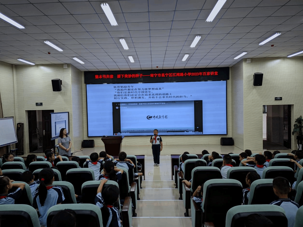 廣西建院10月28日訊(設(shè)備與環(huán)境學(xué)院 文/侯文淑 圖/韋思源 楊貴維)每一個人的生命都是一粒神奇的種子,童年是最美好的歲月,而閱讀能夠喚醒這種潛在的美好與神奇。10月27日下午,設(shè)備與環(huán)境學(xué)院黨總支書記侯文淑應(yīng)邀參加南寧市邕寧區(qū)江灣路小學(xué)開展的百家講堂活動,為200多名江灣路小學(xué)的學(xué)生導(dǎo)讀中華先鋒人物故事匯叢書——《袁隆平“東方稻神”》。侯文淑老師從被譽(yù)為中國“第五大發(fā)明”的“東方魔稻”引入,讓同學(xué)們理解“民為國基,...