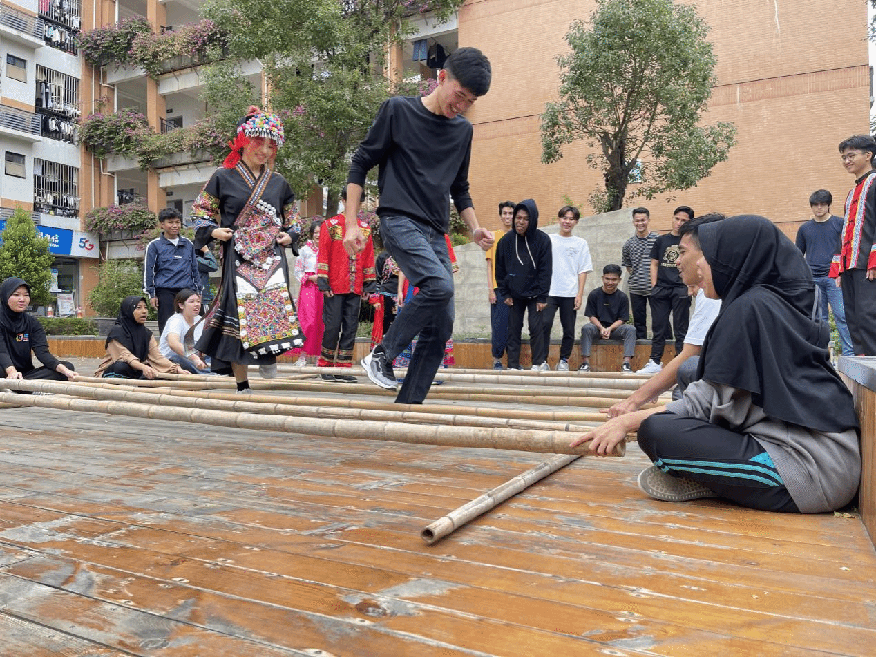 廣西建院12月13日訊(市政與交通學(xué)院?文/高楊楊 李姿蓉 圖/黃恩晨 韋華寧)為進(jìn)一步豐富我校留學(xué)生校園生活,廣泛傳播中華優(yōu)秀傳統(tǒng)文化,12月12日下午,知行工作室成員高楊楊、梁金來(lái)、黃華以及藝術(shù)學(xué)院高翔老師組織我校21名國(guó)外留學(xué)生,與市政學(xué)院學(xué)生代表一同在學(xué)生社區(qū)建身吧開(kāi)展了一場(chǎng)別開(kāi)生面的民俗傳統(tǒng)活動(dòng)——竹竿舞。時(shí)逢臘月,冬日的校園依舊溫暖如春,30余名同學(xué)們穿上屬于自己民族的服裝,與老師們一起來(lái)到健身吧廣場(chǎng)。梁金來(lái)老師向同學(xué)們介紹了竹竿舞的文化,...