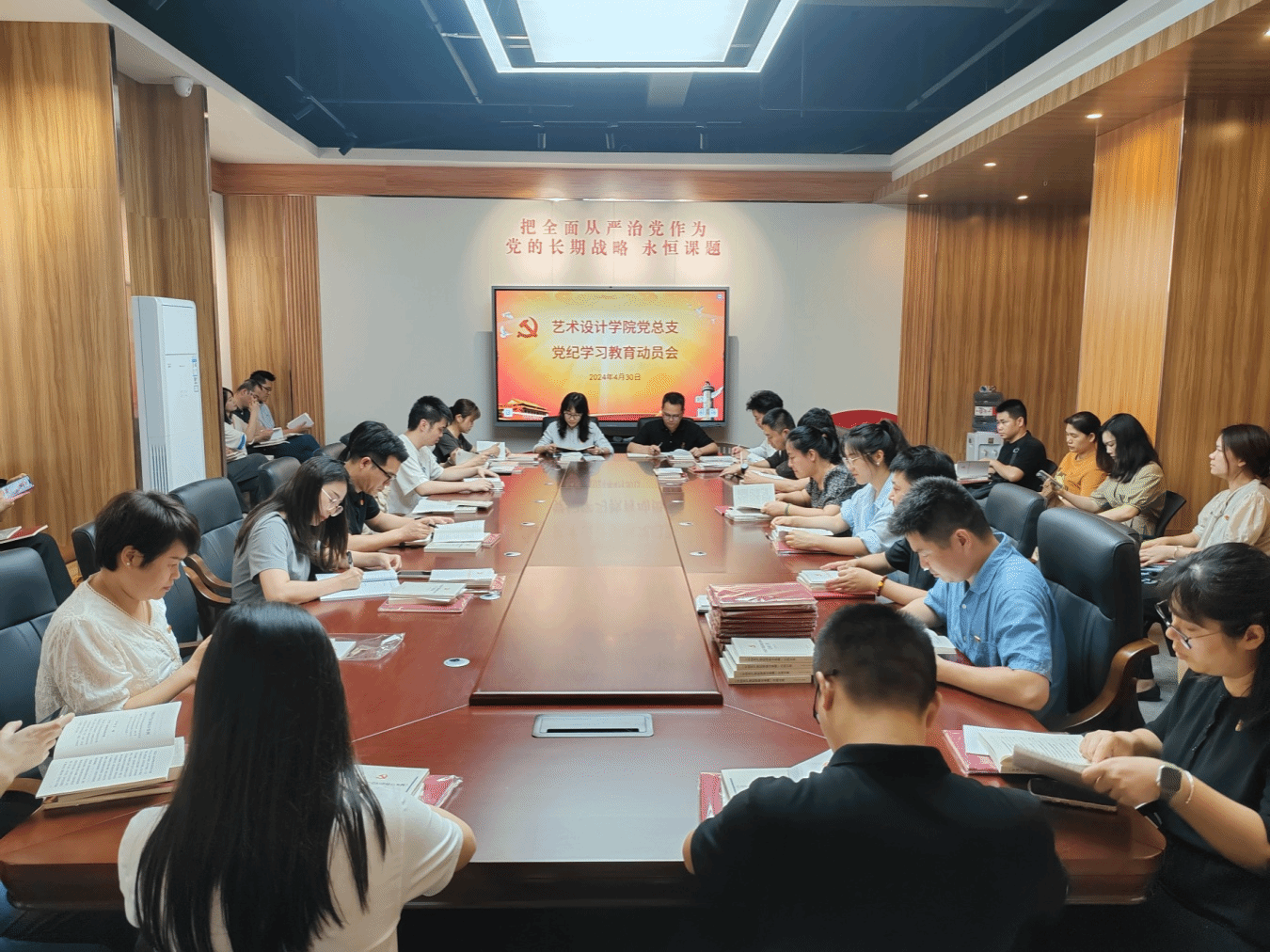 廣西建院5月11日訊(藝術(shù)設(shè)計(jì)學(xué)院 陳昕)近日,藝術(shù)設(shè)計(jì)學(xué)院黨總支黨紀(jì)學(xué)習(xí)教育動(dòng)員部署會(huì)在學(xué)校廉潔教育基地召開(kāi)。會(huì)議由學(xué)院黨總支陳菲菲書(shū)記主持,共49名黨員教師參加。陳菲菲書(shū)記在動(dòng)員部署講話中強(qiáng)調(diào),開(kāi)展黨紀(jì)學(xué)習(xí)教育是今年黨的建設(shè)工作的一項(xiàng)重要任務(wù),全體黨員干部要深入學(xué)習(xí)貫徹習(xí)近平總書(shū)記關(guān)于加強(qiáng)黨的紀(jì)律建設(shè)的重要論述精神,深刻認(rèn)識(shí)開(kāi)展黨紀(jì)學(xué)習(xí)教育的重大意義,領(lǐng)導(dǎo)干部要帶頭學(xué)習(xí)、作出表率,推動(dòng)學(xué)院教師黨員學(xué)紀(jì)、...