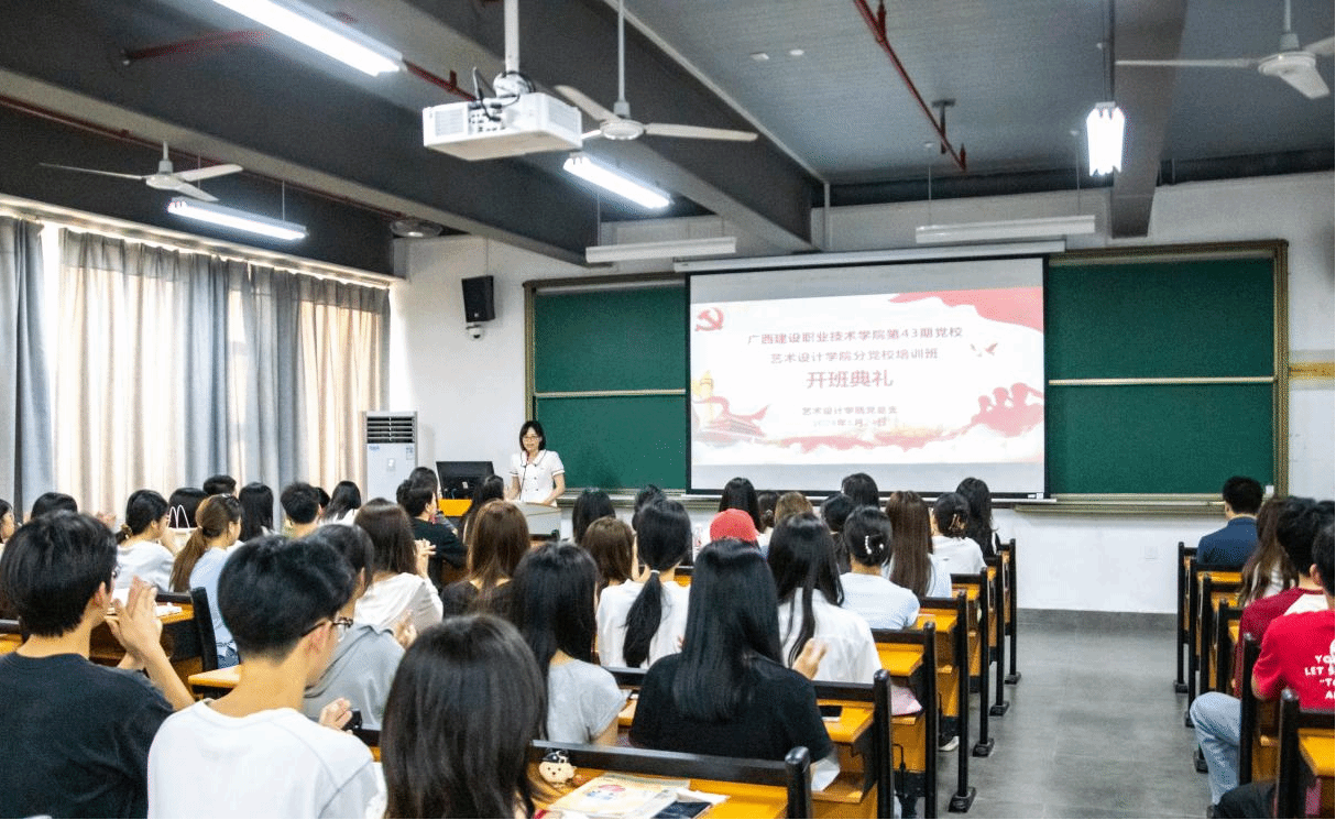 廣西建院5月27日訊(藝術設計學院 文/程舒陽 圖/程舒陽 鄧小燕)5月25日至26日,藝術設計學院黨總支在6教305教室舉辦了第四十三期黨校藝術設計學院分黨校培訓班。藝術設計學院黨總支書記陳菲菲、組織員陳昕、學管干事孟維博、學生黨支部與學生第二黨支部全體委員,68名學生入黨積極分子參加了本次黨校培訓班開班儀式。開班儀式現場開班儀式后,藝術設計學院黨總支書記陳菲菲以“青年擔當”為主題為學員們講授了開班第一課。她鼓勵青年學子們要勇于擔當起民族復興的歷史重任,...